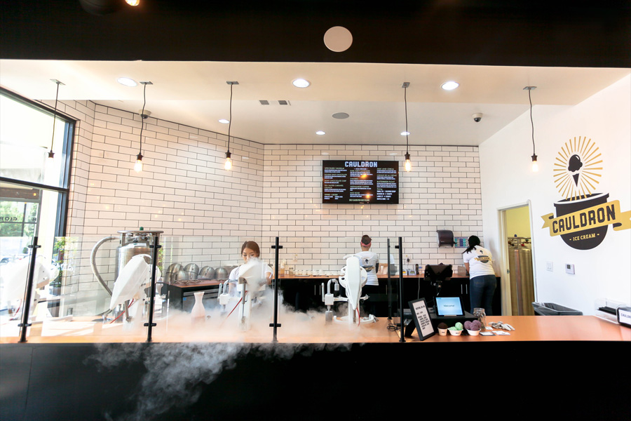 Located in Orange County, Cauldron serves homemade liquid nitrogen ice cream made in small batches. Since opening, Cauldron's ice creams and Puffle Cones have gained attention from across the globe.