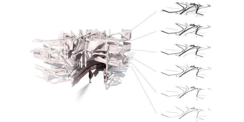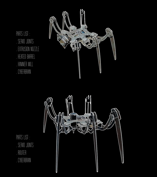 Driven by my criticisms of current methods of building construction (and the excessive energy, effort, and expense that come along with it), the aim of my final undergraduate project is to develop a colony of low-tech robots that can reconstruct and reincarnate space using additive manufacturing of sustainable and reusable materials. By collecting, melting, and mixing scrap metals and parts of decimate structures, these robots transform existing material into new, hybrid composites, to reallocate them into inhabitable spaces.